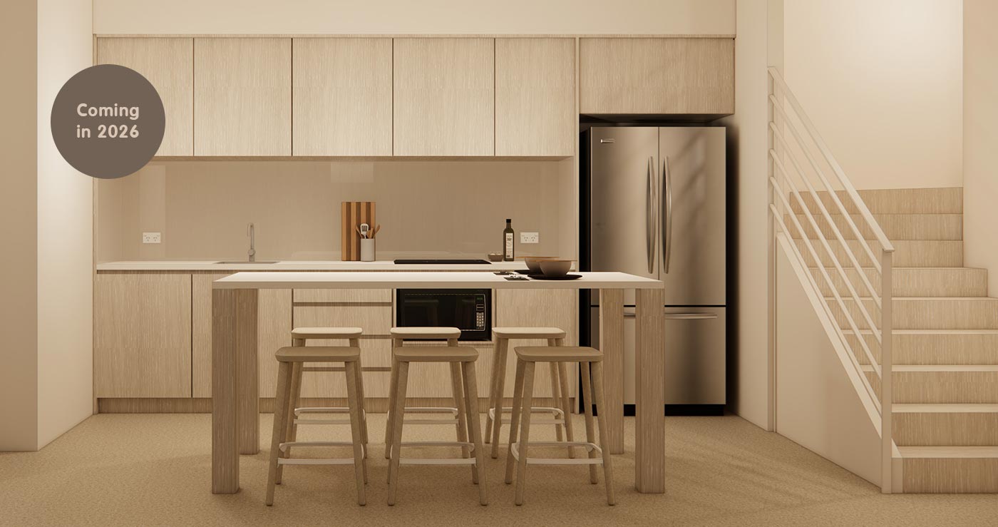 Our multi-share apartments have private bedrooms. Bathrooms are shared. There is a communal kitchen and living space.